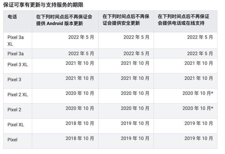 以 Google 自家的 Pixel 手机为例,官方明确新设备在至少 3 年(从设备在 Google 商店首次上架的日期算起)内都会收到 Android 版本更新和安全更新,比如 2018 年推出的 Pixel 3 系列,维护周期便会持续到 2021 年。