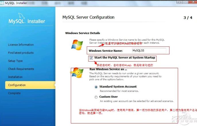 6、mysql安装完成后进入服务器配置,可以选择3种服务器类型,选择哪种服务器将影响到mysqlConfigurationWizard(配置向导)对内存、硬盘和过程或使用的决策。