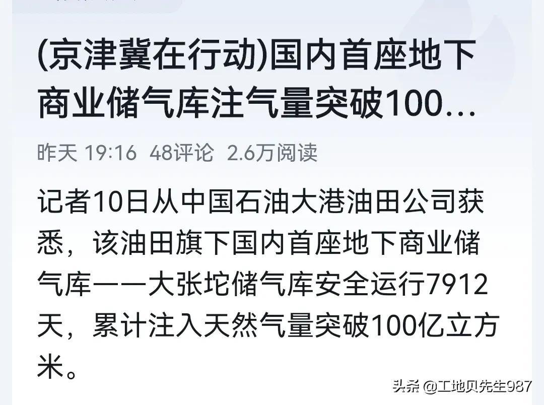 第1个好消息:国内首座地下商业储气库注气量突破100亿立方米