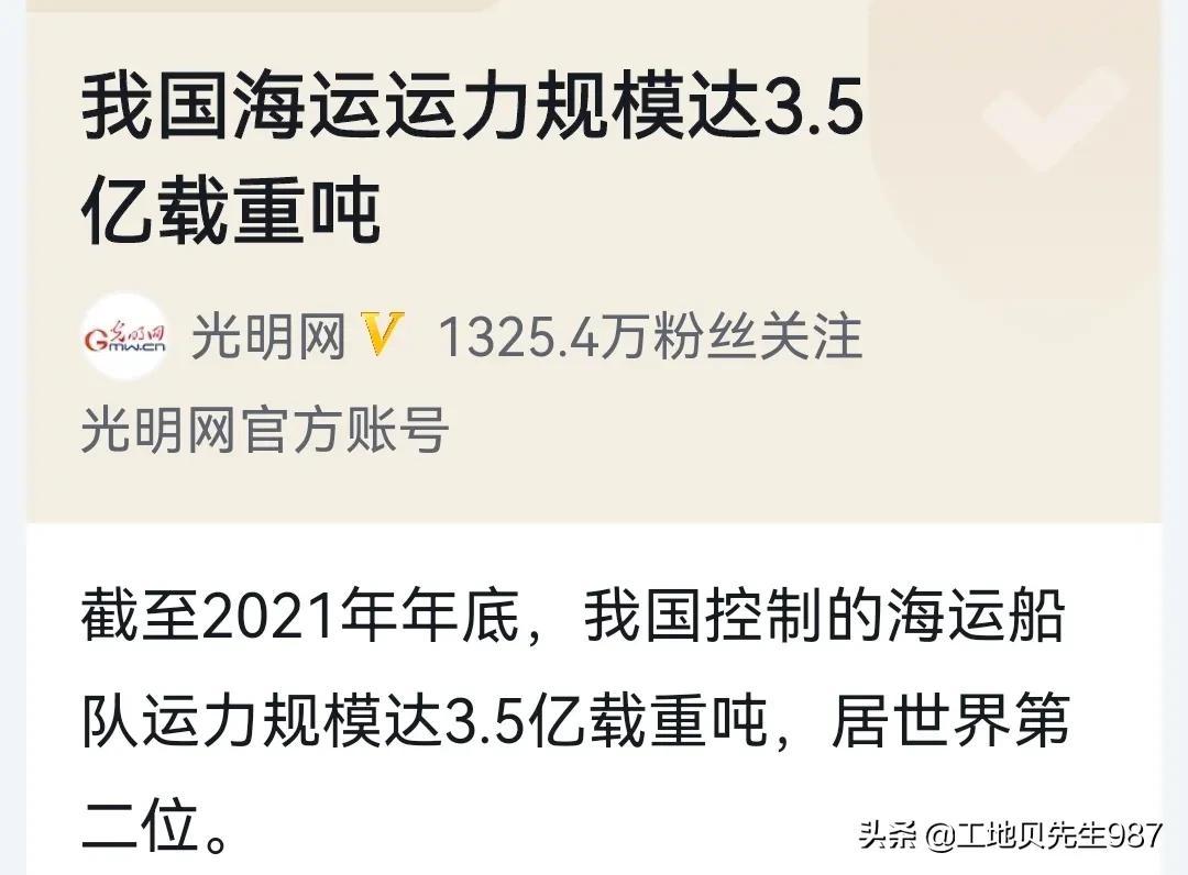 众所周知,海运作为当今国际贸易中最重要的交流方式,海运占到了我国对外贸易的95%。据统计,截至2021年末,由我们掌控的海洋运输能力已达到3.5亿吨,超过日本,位居全球第二。