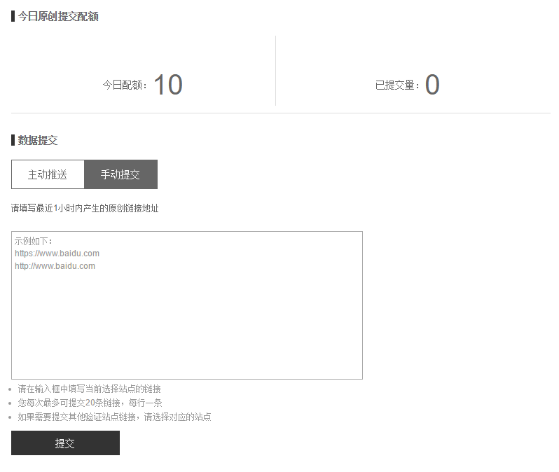 但是就在昨天指尖登录百度站长平台看数据的时候,发现主动推送是有效果的了,虽然没有能够写几篇原创的文章推送,同时最大的发现就是百度原创保护后台发生了一些变化,那就是可以看到“今日原创提交配额”,也就是可以看到今天可以提交的原创 URL 链接数量,以及当天已经提交的数量,所以总的来说变得更可观了一些。