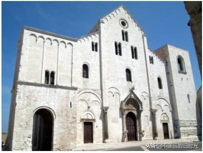 1087年,拜占廷人为免圣尼古拉的遗骨落入敌手,将遗骨从米拉迁到意大利东南部巴里(Bari)的一座教堂(如下图)安放。各地的基督教徒纷纷来此地朝圣,他们将圣尼古拉的故事带回家乡,并转型成本土的故事。