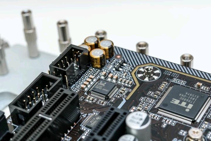 供电方案上,PWM控制芯片为ISL 95866最大可支持4+3相;输入电容为三颗钰邦16V 270微法的固态电容;MOS为安森美提供上桥为4C10N,下桥为4C06N,CPU部分为一上两下,GPU部分为一上一下;每两相供电会有一颗DRIVER来辅助驱动。电感每相一颗,感值R45;输出电容为六颗钰邦6.3V 560微法的固态电容。对比B250来说供电部分的规格还是有比较大的提升,主要是为了兼容六核CPU。