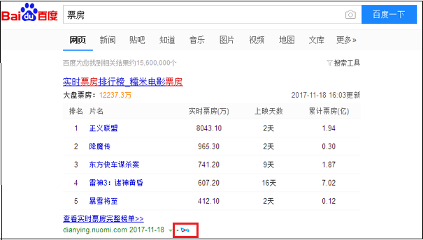如下图,在PC端搜索“票房”这个关键词的时候,你会得到如下结果:
