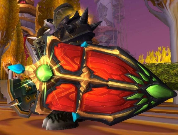 说到骨火这个名称,就能想到骨头和火,而魔兽世界中,自然就是骷髅头对吧,而且还是冒着火的,相信说名副其实还是很适合的吧。这款比起之前的两款盾牌就显得稍微会有那么一点炫丽了,因为之前的中规中矩,这款自然是要闪亮一些,很多玩家都喜欢,绝对不错。很多人拿着它极其容易受到关注,绝对还是不错的。