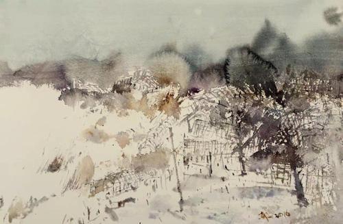 寒雅飞数点,流水绕孤村。斜阳欲落处,一望黯消魂。