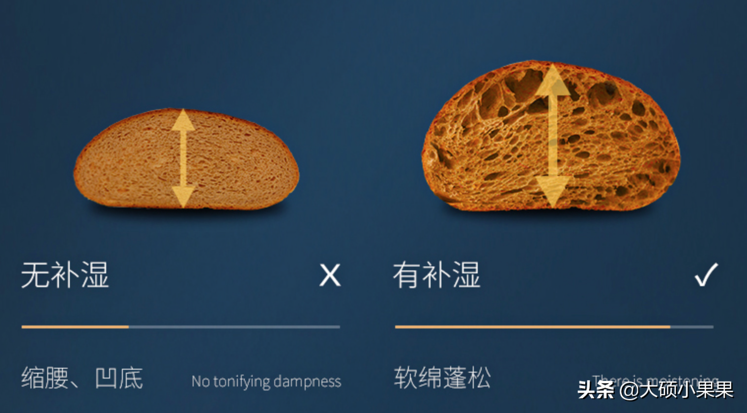 差别还是很大的,通过补湿烤做出来的面包,内部有明显的蜂窝状结构,口感也会更加软绵蓬松。